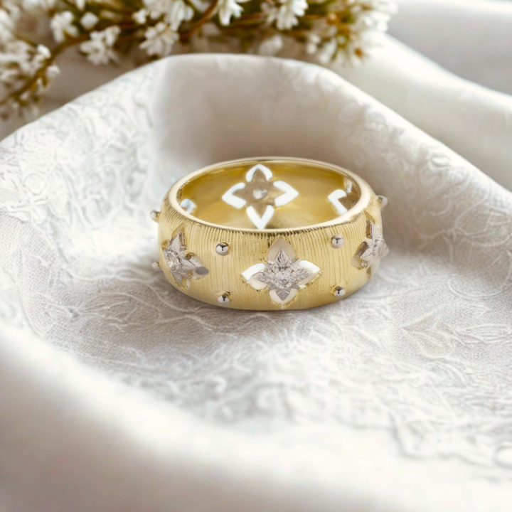 The Stardust Bloom Band is a masterpiece of modern luxury, blending bold design with delicate celestial elegance.
